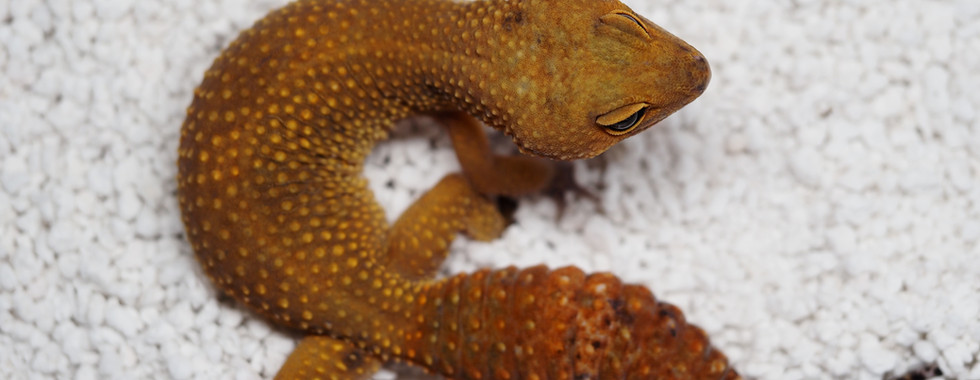 Where the gene is present, but the black pigment is entirely receded, geckos can look albino but are not. This is called Abyssinian.